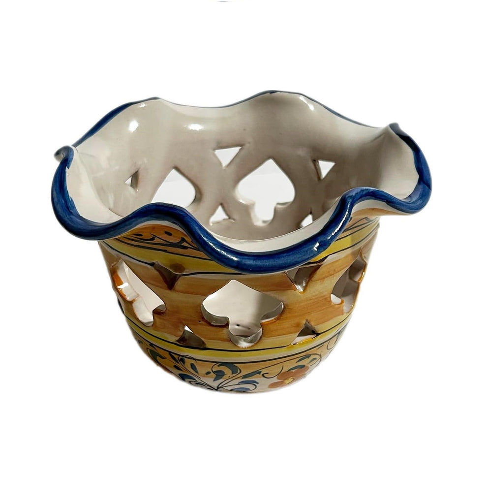 Coppa in ceramica per lampadario, ricambio per lampadario applique plafoniera firmato e decorato a mano dai maestri ceramisti di santo stefano di camastra (Arancio quadrifoglio)