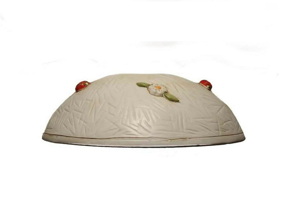 Piatto per lampadario in ceramica realizzato artigianalmente e decorato a mano, tutto rifinito nei minimi particolari. Prodotto realizzato artigianalmente con certificato made in italy. Misure: Diametro: 30 cm, Altezza: 10 cm, Diametro foro: 4 cm, Foro per attacco E27 (attacco grande). Articolo disponibile in pronta consegna!