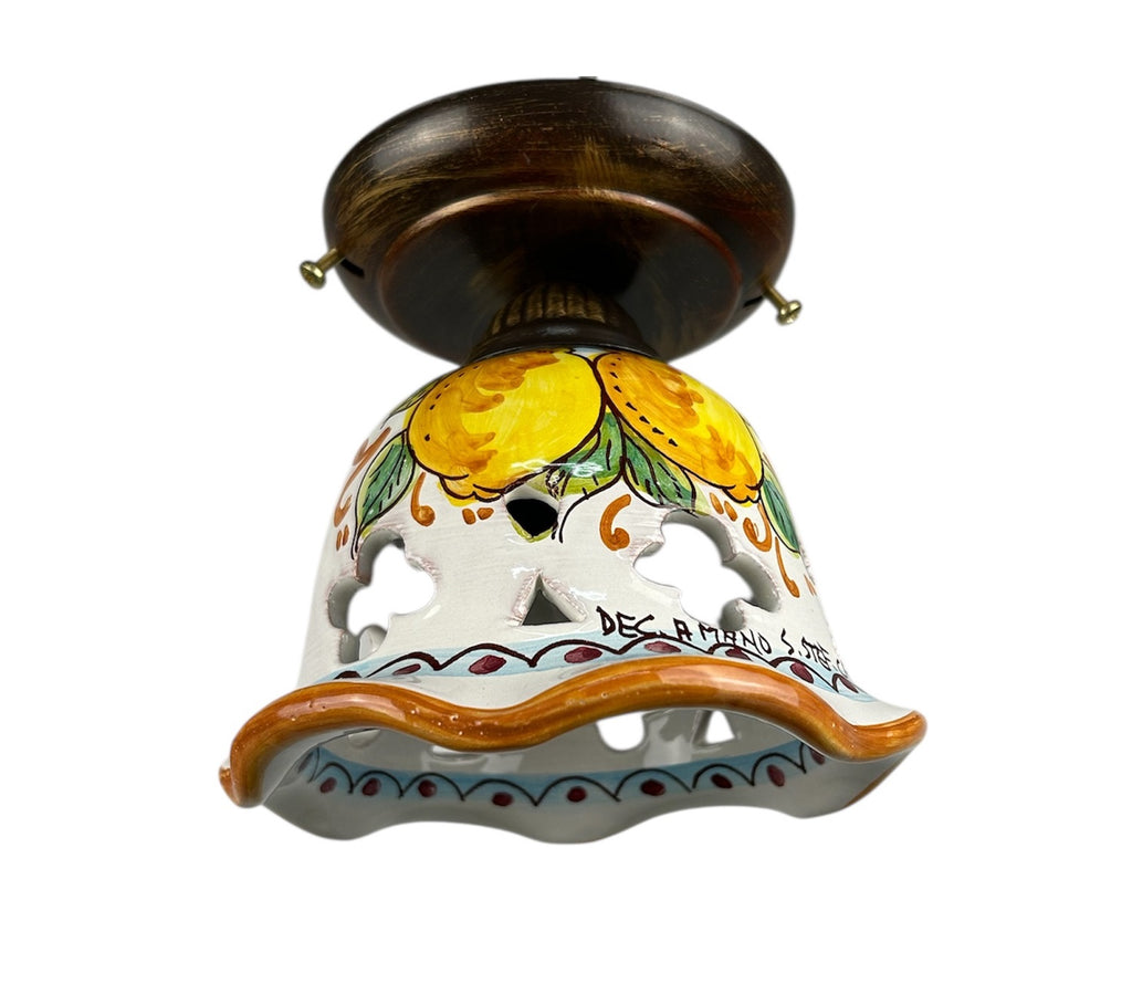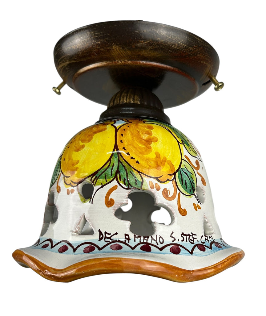 Plafoniera Spot da Soffitto, 1 Luce, Ferro Battuto e Ceramica Siciliana, Cucina, Bagno e Veranda D 15 art. limoni