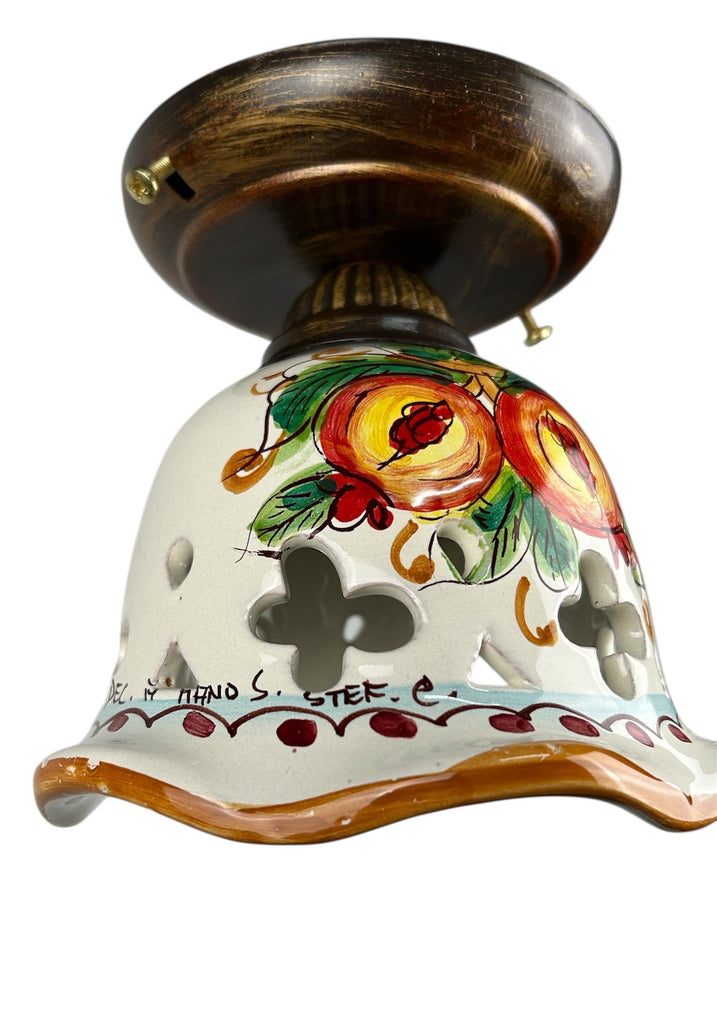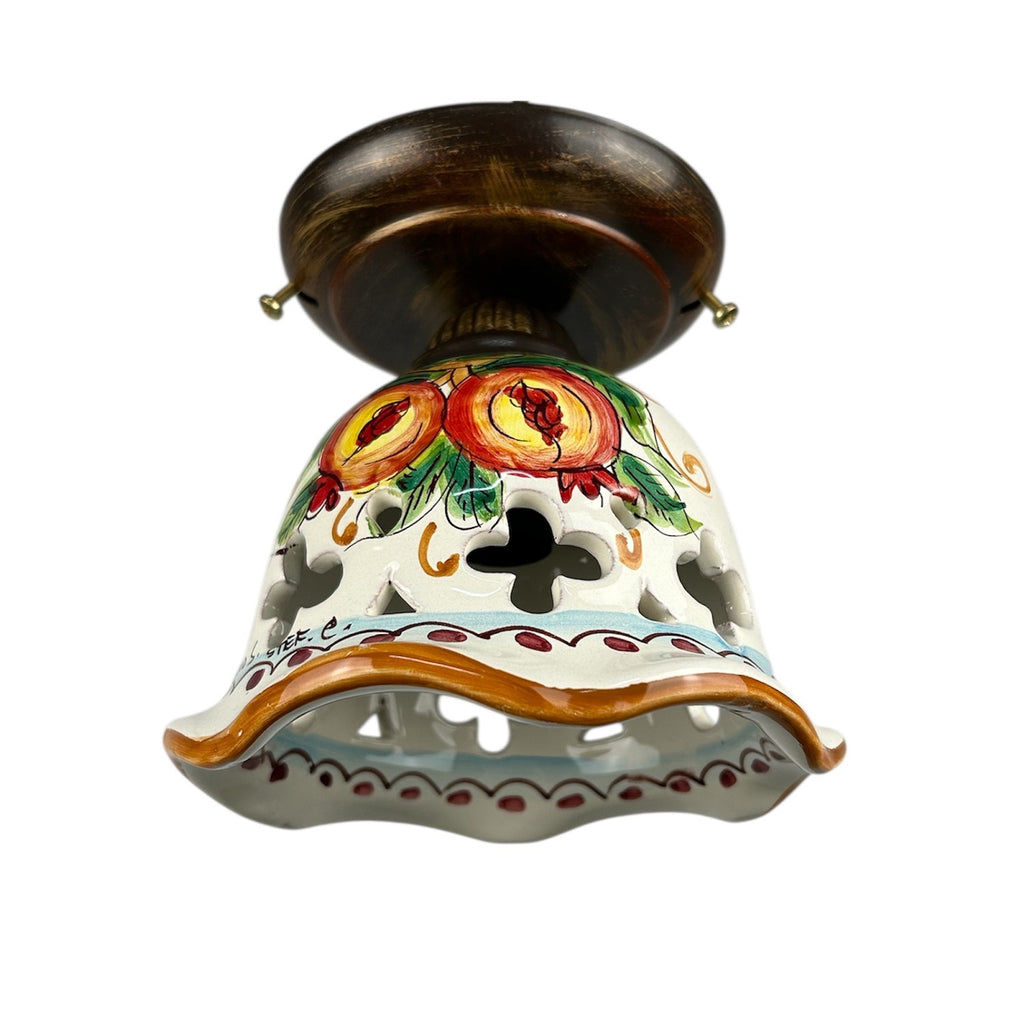 Plafoniera Spot da Soffitto, 1 Luce, Ferro Battuto e Ceramica Siciliana, Cucina, Bagno e Veranda D 15 art. melograno