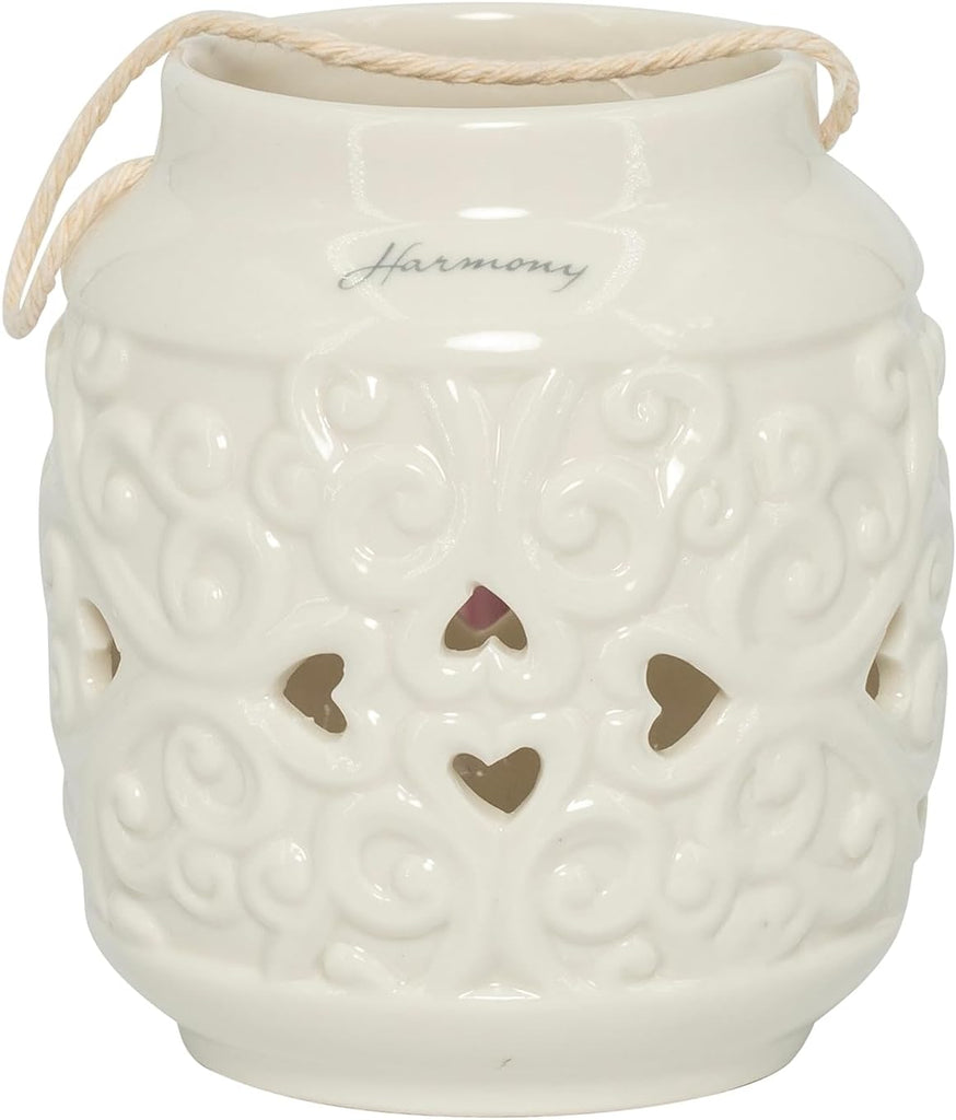 Bomboniera matrimonio a led portacandela in porcellana bianco decorato con cuori harmony PRMT23037