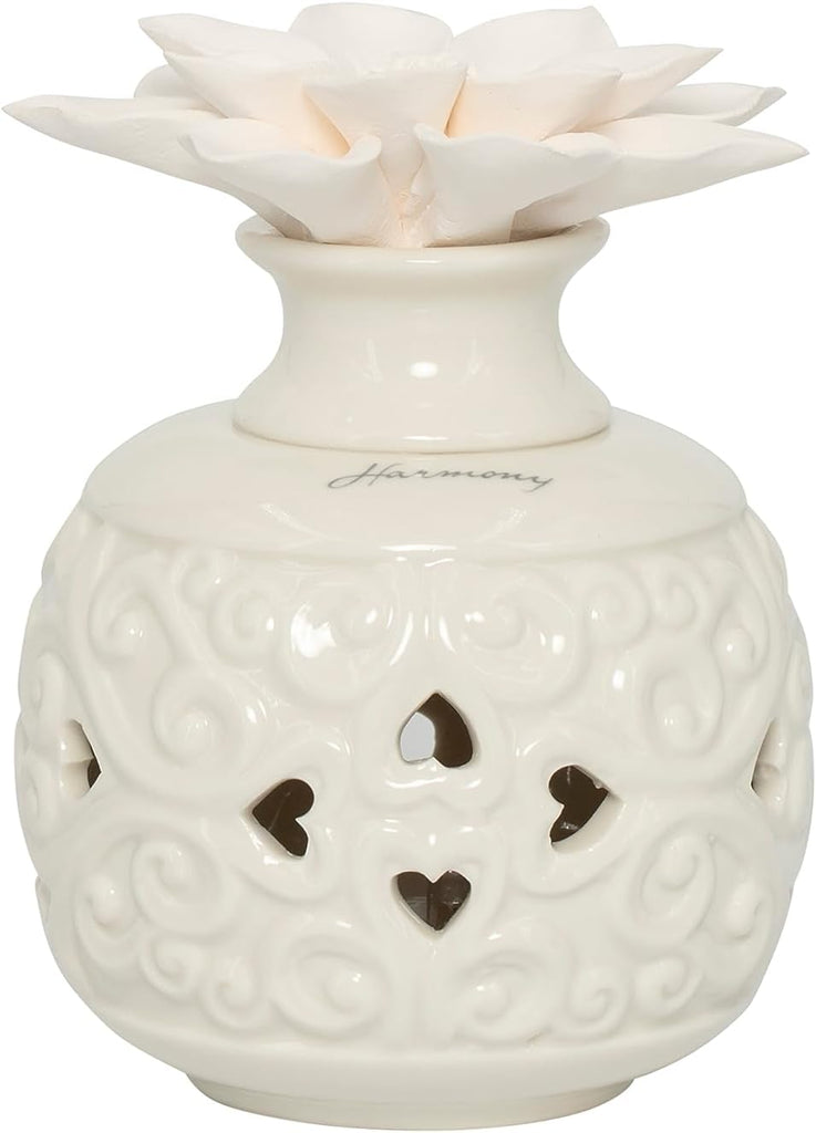 Bomboniera matrimonio a led profumatore in porcellana bianco decorato con fiore in gesso harmony PRMT23034