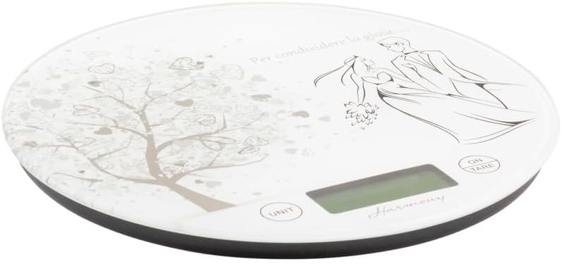 Bomboniera matrimonio bilancia tonda in vetro con albero della vita e sposi bianco harmony SNVT24222