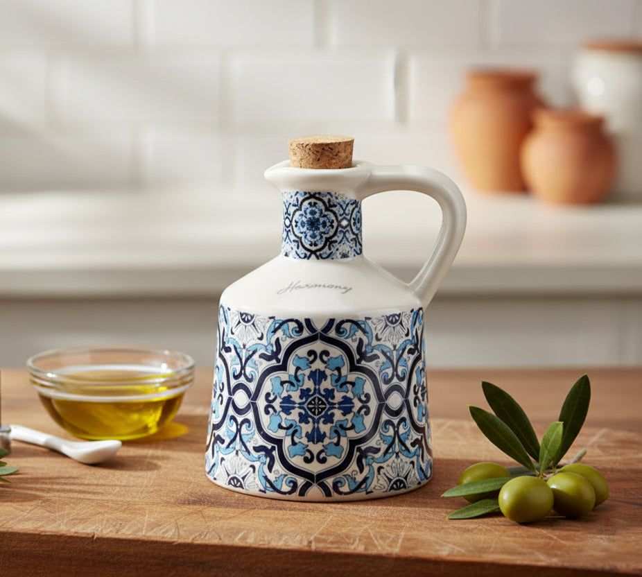 Bomboniera matrimonio oliera in porcellana con decorazione maioliche blu e bianco harmony PRMT24205