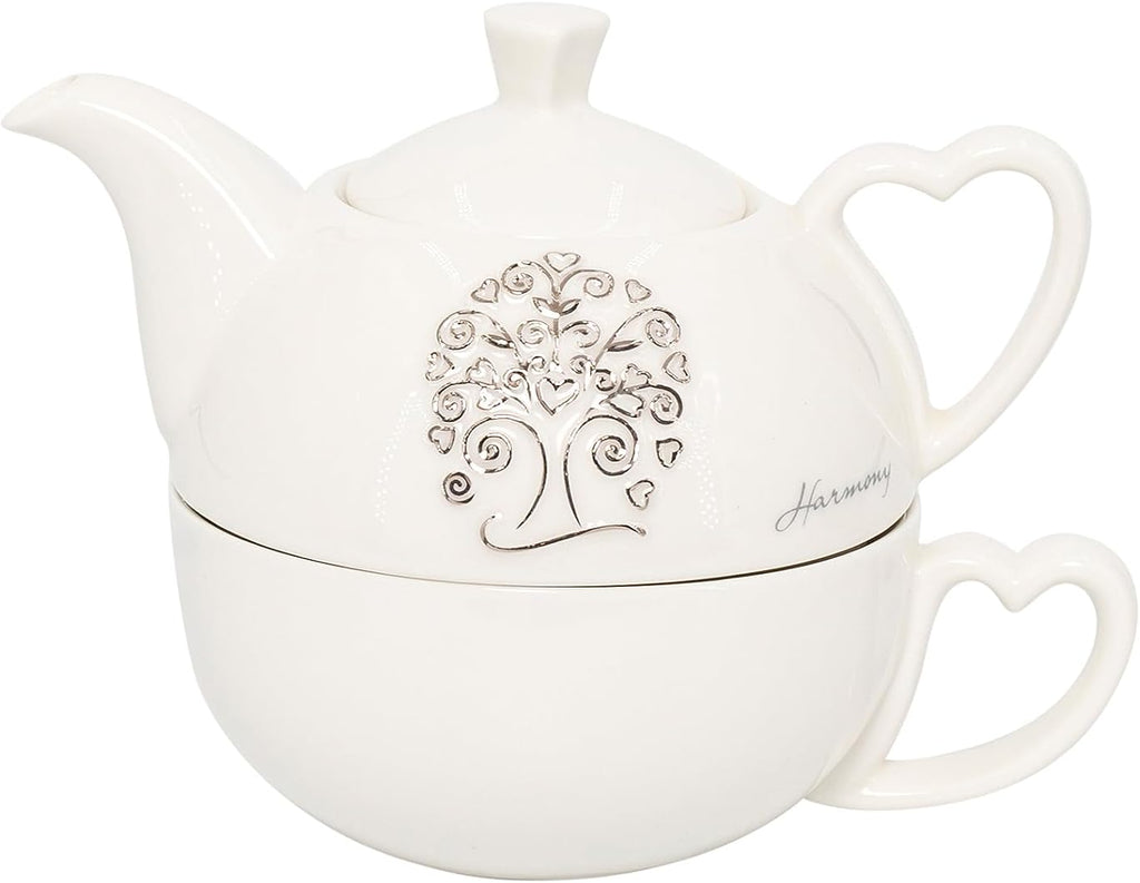 Bomboniera matrimonio teiera in porcellana con decorazione albero della vita harmony PRMT23260