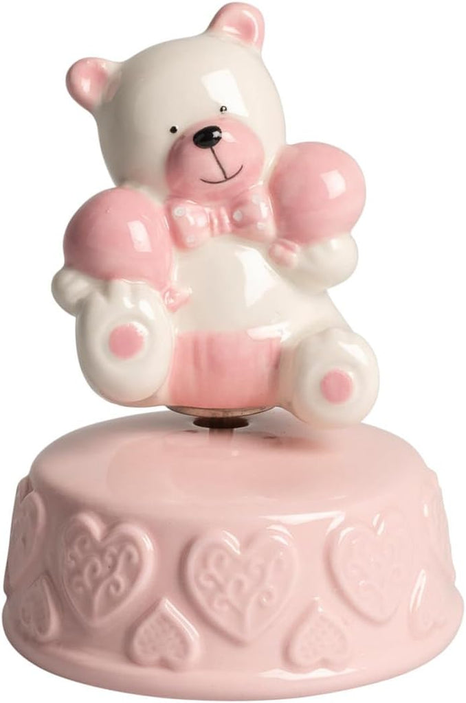 Carillon orsetto decorativo in porcellana bomboniera Battesimo e Nascita bambina Harmony PRNB25059