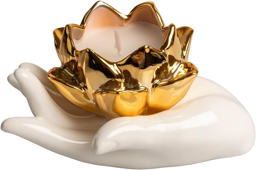 Mano con fiore porta candela in porcellana bomboniera per comunione, cresima, matrimonio Harmony PRMT25102