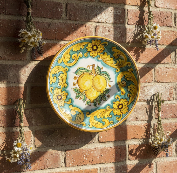 Piatto medio in ceramica decorata a mano da ceramisti siciliani limoni art 13