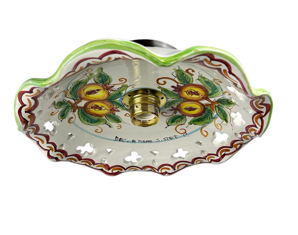 Plafoniera Spot da Soffitto, 1 Luce, Ferro Battuto e Ceramica Siciliana, Cucina, Bagno e Veranda art. melograno