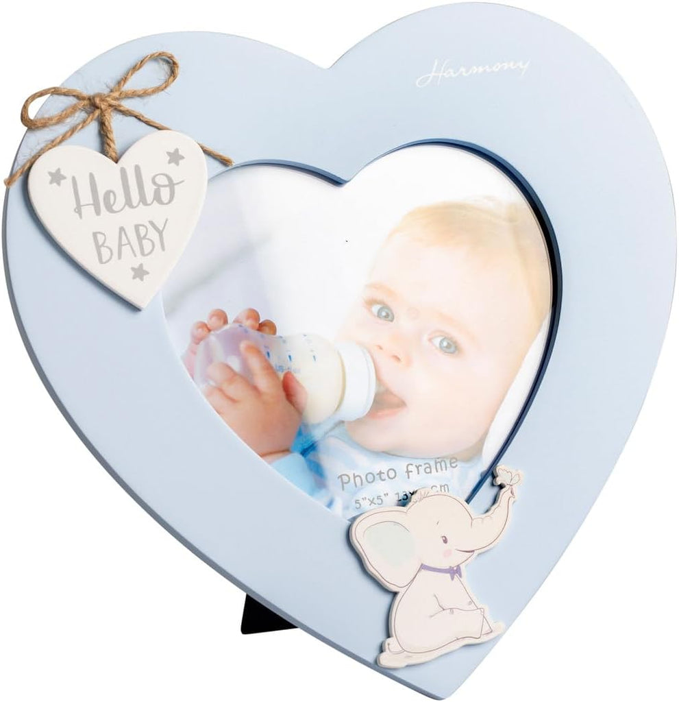 Porta Foto in Legno Cuore con Elefante bomboniera Battesimo e Nascita Bambino Harmony ARNB25215