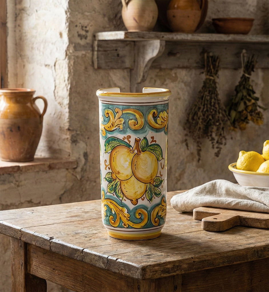 Portabicchieri grande in ceramica decorata a mano da ceramisti siciliani limoni art 17