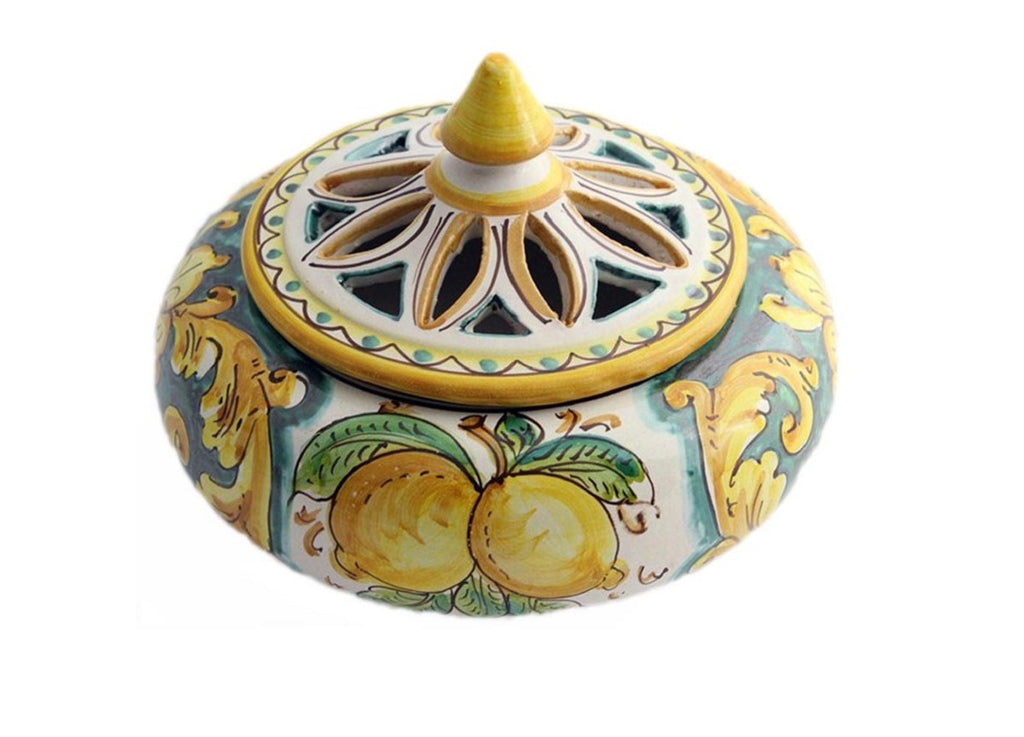 Portacaramelle grande in ceramica decorata a mano da ceramisti siciliani limoni art 1