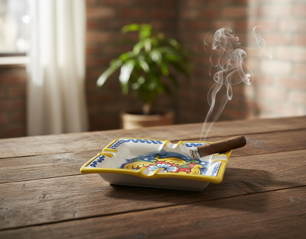 Portacenere realizzato interamente in ceramica siciliana e decorato a mano dai maestri di santo stefano di camastra cuore dell'arte ceramista siciliana, misure: larghezza: 18cm, altezza: 15cm, trattasi di prodotti realizzati interamente a mano, eventuali imperfezioni denotano l'artigianalità del prodotto! Articolo disponibile in pronta consegna!