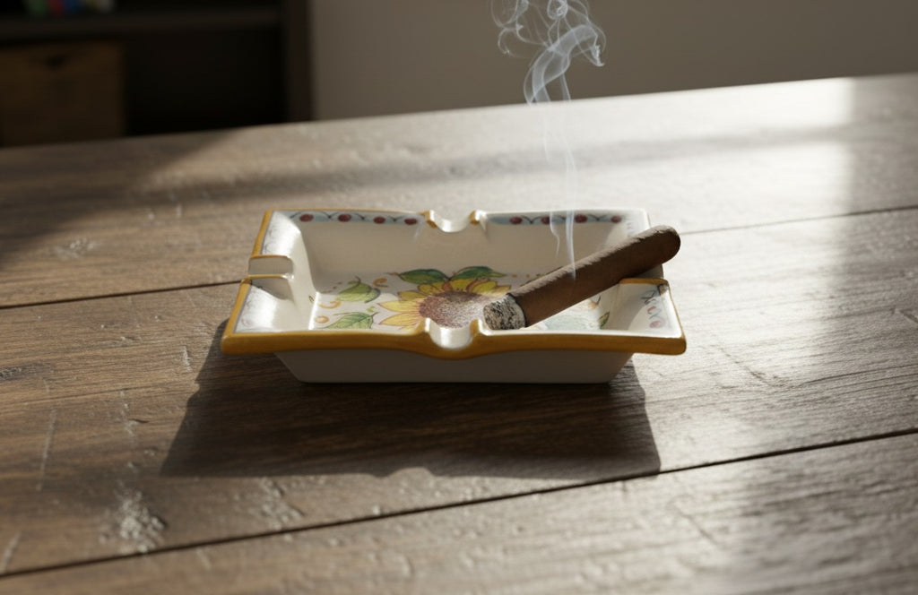 Portacenere in ceramica decorata a mano da ceramisti siciliani girasole art 27