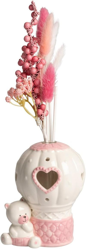 Profumatore led mongolfiera con orsetto decorativo in porcellana bomboniera battesimo e nascita bambina harmony PRNB25238