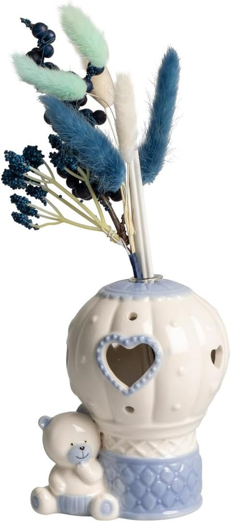 Profumatore led mongolfiera con orsetto decorativo in porcellana bomboniera battesimo e nascita bambino harmony PRNB25237
